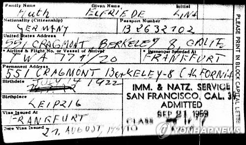 | △ 사회보장혜택을 받은 나치 전범의 이민귀화국 서류 (AP=연합뉴스) |