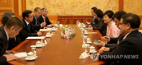 | △ 박 대통령, 가오후청 중국 상무부장 접견 (서울=연합뉴스) 백승렬 기자 = 박근혜 대통령이 1일 청와대를 방문한 가오후청 중국 상무부장을 접견하고 있다. srbaek@yna.co.kr |