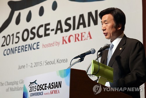 윤 장관은 이날 서울의 한 호텔에서 열린 '2015 유럽안보협력기구(OSCE)-아시아 회의' 개회식 기조연설에서 "북한을 단지 안보의 관점뿐 아니라 경제와 인권 차원에서 바라보면서 종합적인 접근을 하는 것이 중요하다"며 이같이 밝혔다.