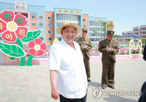 | △ 완공된 원산 고아원 찾은 김정은 (서울=연합뉴스) 김정은 북한 국방위원회 제1위원장이 1일 북한의 '어린이날'인 국제아동절을 맞아 고아원인 강원도 원산 애육원, 육아원을 찾았다고 노동신문이 2일 보도했다. 김정은 제1위원장은 완공된 애육원과 육아원을 보고 "사회주의 제도의 우월성을 보여주는 창조물"이라며 만족감을 표시했다. |
