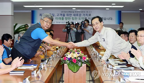 | △ 현대차 노사의 지난해 임협 타결 조인식 모습. <<연합뉴스 자료사진>> |