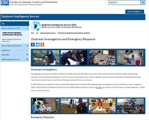 | △ 미국 CDC 홈페이지에 역학조사관의 업무가 자세히 소개돼 있다. |