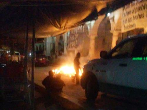 | △ 1일밤(현지시간) 멕시코 남부 게레로 주의 한 투표소에 괴한들이 들이닥쳐 투표용지를 강탈한뒤 이를 불태우고 있다.(출처=Notimex) |