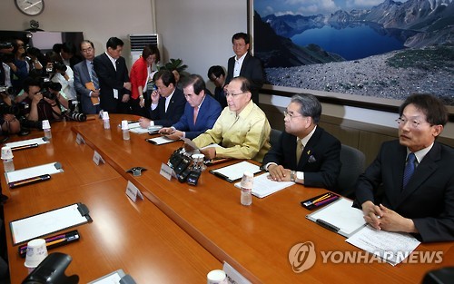 | △ 메르스 발생지역 시도교육감 대책회의 (서울=연합뉴스) 전수영 기자 = 황우여 사회부총리 겸 교육부 장관이 3일 오전 정부서울청사에서 열린 메르스 발생지역 시도교육감 대책회의에서 모두발언을 하고 있다. 앉은 사람 왼쪽부터 김병우 충북교육감, 김지철 충남교육감, 황우여 부총리, 이재정, 조희연 서울시교육감. |