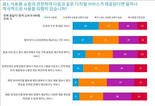 다만, 한국 소비자의 경우 소비재를 살 때 유통업체가 제공하는 다양한 디지털 서비스를 이용하는 비율은 높지 않았다.