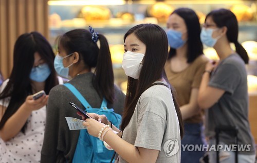 | △ 마스크 착용한 외국인 관광객들 (영종도=연합뉴스) 임헌정 기자 = 중동호흡기증후군(메르스) 여파로 유커(遊客·중국인 관광객) 300여명이 한국 여행을 취소한 것으로 나타났다. 지난해 610만명이 방한, 우리나라의 관광·유통산업을 떠받쳤던 '유커 특수'가 메르스 확산으로 타격을 받을 수 있다는 우려가 현실화하고 있다. 사진은 마스크를 착용하고 2일 오후 인천국제공항에 입국하는 외국인 관광객들. kane@yna.co.kr |