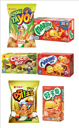 이들 3개국에서 판매되고 있는 고래밥은 9가지 물고기 모양 덕에 학습 소재로 활용되는 등 아이들에게 인기가 많다고 오리온은 설명했다.