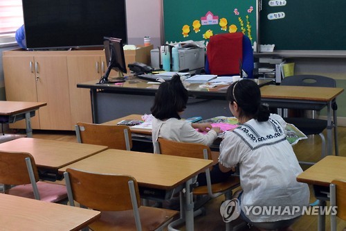 | △ 휴업한 학교서 수업듣는 학생 (수원=연합뉴스) 이영주 기자 = 3일 중동호흡기증후군(메르스) 확산여파로 이틀째 휴업 중인 경기도 한 초등학교에서 부득이한 이유로 등교한 학생들이 교실에서 교육활동 중인 모습. |