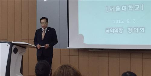정 의장은 3일 오후 서울대에서 '청년의 꿈이 나라의 미래를 바꾼다'는 주제로 열린 자유전공학부 명사 초청특강에서 이처럼 밝혔다.