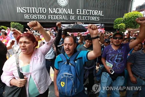 교원노조는 2일 수도 멕시코시티에 있는 선거위원회 앞으로 몰려가 반정부 구호를 외치면서 투표 거부 운동을 추진하겠다고 선언했다.