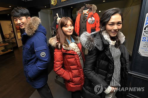 | △ 서울 명동 빈폴 플래그십 스토어에서 모델들이 겨울 다운점퍼 `폴라다운(polar)'과 `애니다운(annie)'을 선보이고 있다.(연합뉴스 자료사진) |
