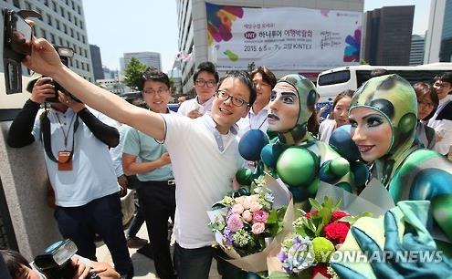 관람객들의 메르스 감염 우려에 대비해 하나투어 측은 열감지카메라와 손소독기, 비접촉식 체온계 등을 설치했다.
