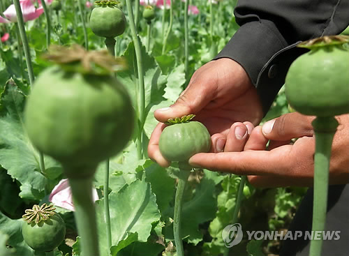 유엔 마약범죄사무국(UNODC)에 따르면 지난해 아프간의 양귀비 재배지는 22만 4천 헥타르(2천240㎢)로 사상 최대를 기록했다. 이는 아프간 국토의 34%로 한반도 면적과 맞먹는다. 생산량은 6천400t에 달했다.
