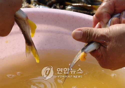 | △ 은어 알 인공수정 장면 <<연합뉴스 DB>> |