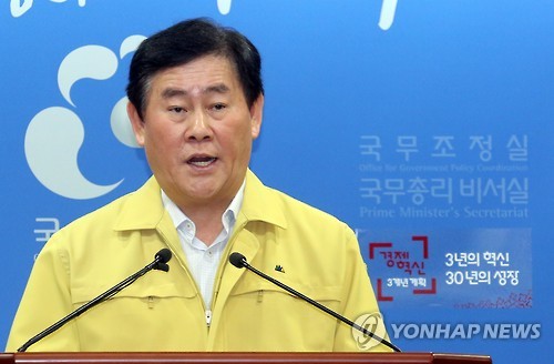 | △ '메르스 대응' 발표하는 최경환 총리대행 (세종=연합뉴스) 배재만 기자 = 최경환 국무총리 직무대행이 7일 오전 정부세종청사 국무총리실 브리핑룸에서 중동호흡기증후군(메르스) 대응 조치와 관련, 정부 대책과 국민 불안을 해소하기 위한 방안 등을 발표하고 있다. |