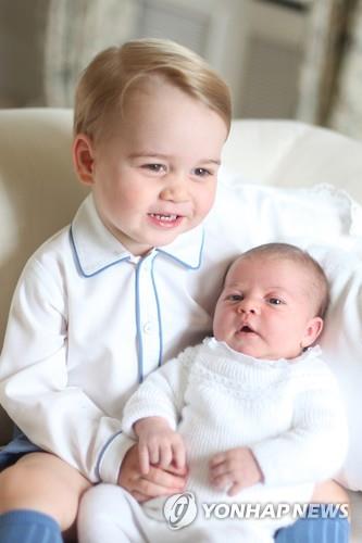 (런던 AP=연합뉴스) 윌리엄 영국 왕세손 부부의 아들 조지 왕자가 지난달 태어난 동생 샬럿 공주를 안고 있는 사랑스러운 사진이 6일(현지시간) 공개됐다.