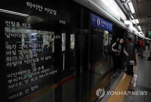 현재 299개 지하철역 4천841개 승강장 안전문에 시가 게시돼 있다.