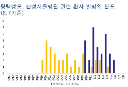애초 감염 진앙으로 지목됐던 평택성모병원은 지난달 19일부터 29일까지 열흘 동안 발병이 가장 잦았고 이후에는 빈도가 크게 떨어져 이번 달 5∼6일 사이에는 발병 건수가 전혀 없었다.