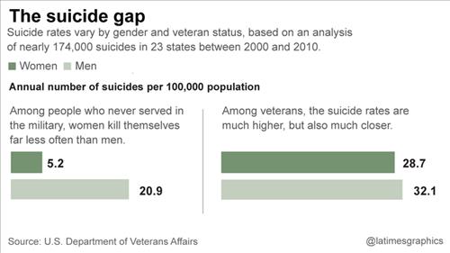 로스앤젤레스타임스(LAT)는 최근 발표된 '정신질환 치료 저널'에 실린 연구보고서와 국방부·보훈부의 각종 통계를 토대로 현역 여군과 전역자들의 자살 심각성을 8일(현지시간) 보도했다.