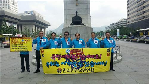 동포단체인 '민리민안(民利民安) 국민연합 해외동포협의회(회장 김명찬)'는 9일 오전 광화문광장에서 '메르스, 국민 여러분 힘내세요. 우리는 이겨낼 수 있습니다'라는 문구가 적힌 플래카드를 들고 출근길 시민을 격려하는 퍼포먼스를 펼쳤다.