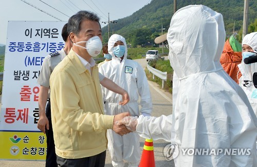 (순창=연합뉴스) 백도인 기자 = 정종섭 행정자치부 장관은 9일 중동호흡기증후군(메르스) 감염 환자가 발생해 마을이 통째로 격리된 전북 순창을 찾아 "순창에서 생산된 농산물은 메르스와 무관하다"며 안전성을 강조했다.