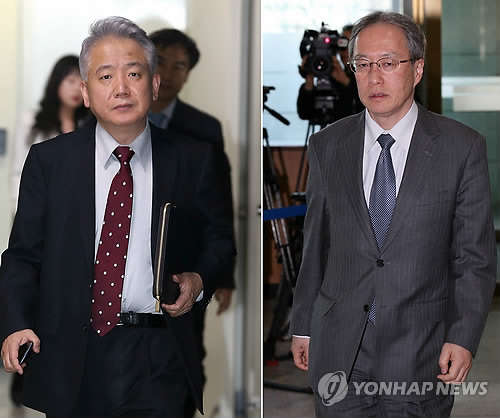 | △ 일본군 위안부 문제 해결을 위한 7차 한일 국장급 협의 한국측 대표인 이상덕 외교부 동북아시아국장(왼쪽)과 일본 대표인 이하라 준이치(伊原純一) 외무성 아시아대양주국장.(연합뉴스 자료사진) |