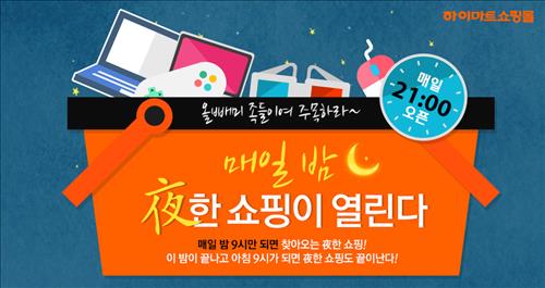 (서울=연합뉴스) 인교준 기자 = 하이마트가 온라인 쇼핑몰(www.e-himart.co.kr)에서 야간 구매고객에게 할인 혜택을 주는 '夜(야)한 쇼핑' 이벤트를 한다고 10일 밝혔다.