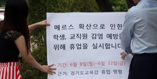 서울시교육청은 강남·서초구 유치원과 초등학교의 일괄 휴업을 오는 12일까지 연장하기로 했다. 강동·송파·강서·양천구에 위치한 학교들은 휴업을 강력히 권고하되 휴업 여부에 대한 학교장의 최종 판단을 존중하기로 했다. 서울교육청 산하 모든 학교에서 이번 주 안으로 긴급소독을 하고, 관련 예산은 교육청이 예비비를 편성해 지원해주기로 했다. 서울시교육청은 10일 조희연 교육감 주재로 4차 중동호흡기증후군(MERS·메르스) 대책회의를 열고 이 같은 방침을 정했다.