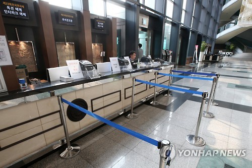 | △ 한산한 전국연극제 매표소 (울산=연합뉴스) 김용태 기자 = 중동호흡기증후군(메르스) 확산이 지난 1일부터 울산에서 열리고 있는 제33회 전국연극제에 영향을 미칠까 주최 측이 노심초사하고 있다. 9일 전국연극제가 열리고 있는 울산문화예술회관에 마련된 매표소가 한산한 모습을 보이고 있다. |