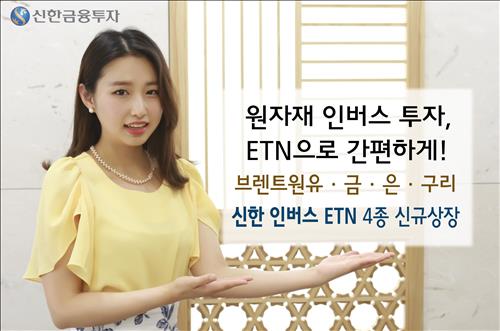 (서울=연합뉴스) 임수정 기자 = 신한금융투자는 브렌트유와 금, 은, 구리 선물 가격을 반대로 추종하는 상장지수증권(ETN) 4종이 오는 18일 신규 상장된다고 11일 밝혔다.