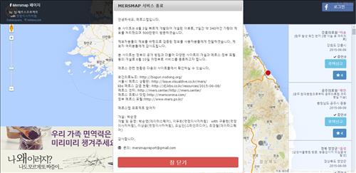 '메르스맵'이라는 이름의 이 사이트는 보건당국이 병원 비공개 입장을 고수할 당시 시중에서 떠도는 정보를 민간 차원에서 공유했지만 당국이 공개 방침으로 선회함에 따라 공식적인 정보가 충분히 갖춰졌다고 보고 서비스를 종료하기로 했다.
