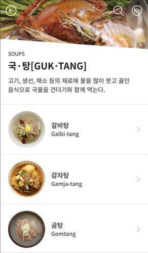 앱에는 200여가지 한식 메뉴의 한국어·영어·중국어·일본어 표준 표기법, 주재료, 맛 특징 등이 담겼다.