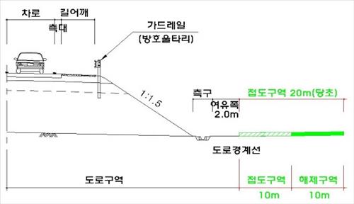접도구역이란 도로구조의 파손 방지, 미관의 훼손 또는 교통에 대한 위험방지를 위해 도로양측에 설치된 구역으로 그 동안 국민들의 재산권 행사를 과도하게 제한한다는 문제 제기가 있었다.