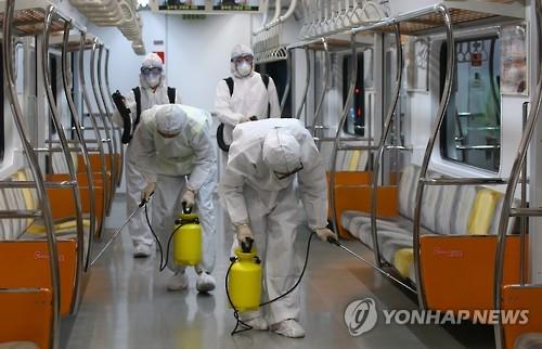 | △ 메르스 물렀거라 (고양=연합뉴스) 김도훈 기자 = 9일 오후 경기도 고양시 서울메트로지축차량기지에서 방역 관계자들이 중동호흡기중후군(메르스) 예방 대책의 하나로 살균소독 및 방역작업을 하고 있다.2015.6.9 superdoo82@yna.co.kr |
