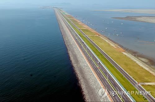 방조제 중간 중간에 바다를 가까이 구경할 수 있는 관망대가 있고 공원도 조성돼 있다.