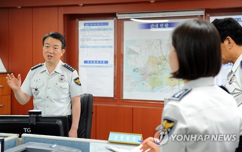 | △ 강신명 경찰청장이 지난 10일 오후 경기 평택경찰서를 방문해 메르스 관련 사항을 점검하고 있다. |