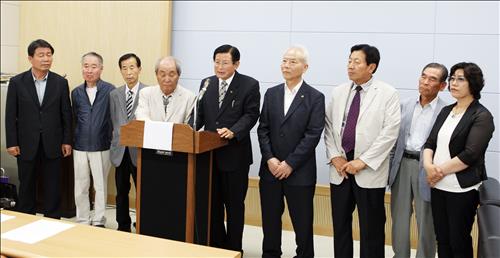 | △ (청주=연합뉴스) 전창해 기자 = 청주·청원 문화원 관계자들이 12일 청주시청 브리핑룸에서 기자회견을 열어 양 문화원의 통합을 선언하고 있다. 양 문화원은 지난해 7월 청주시와 청원군이 통합한 이후 45개 단체 가운데 유일하게 미통합 단체로 남아 있었다. 2015.6.12 jeonch@yna.co.kr |