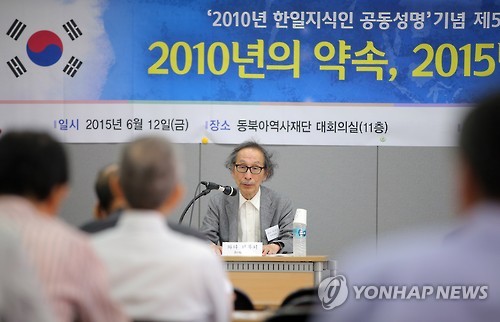 (서울=연합뉴스) 고은지 기자 = 와다 하루키(和田春樹) 도쿄(東京)대 명예교수는 "역사에 대한 반성, 속죄의 노력이 일본 정부 주위에 모이는 역사 불감증 환자들에 의해 밀려 넘어지고 있다"고 우려했다.