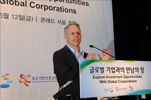 | △ 인텔의 빅터 웨스터린드(Victor Westerlind) 이사가 중소기업청 주최 '글로벌 기업과의 만남의 장' 행사에서 연설을 하고 있다. |
