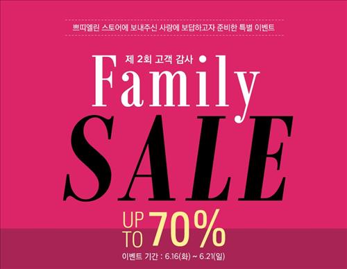 심석영 쁘띠엘린 마케팅 본부장은 "지난해 패밀리 세일은 시작 3시간 만에 킨더스펠의 주요 품목이 동날 만큼 고객 반응이 뜨거웠다"며 "앞으로는 매년 정기적으로 세일을 할 예정"이라고 전했다.