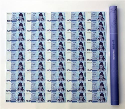 45장의 1천원짜리 지폐는 정상적으로 발행된 한국은행권이므로 잘라서 사용할 수도 있다.