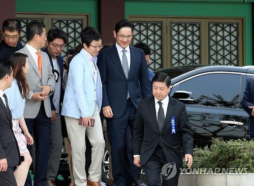 이날 면담에는 권오현 삼성전자 대표이사 부회장과 윤용암 삼성증권[016360] 사장, 안민수 삼성화재[000810] 사장, 김창수 삼성생명[032830] 사장, 조남성 삼성SDI[006400] 사장 등이 참석했다.