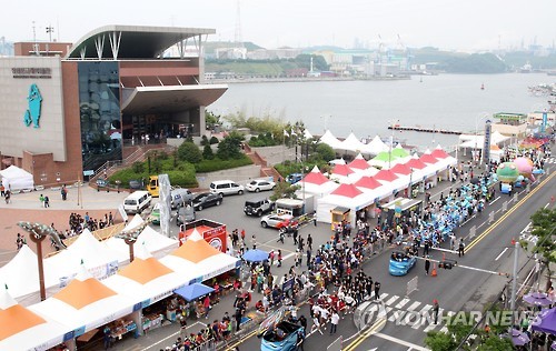 | △ '고래로 떠들썩' 울산고래축제 폐막 (울산=연합뉴스) 28일 개막한 2015 울산고래축제가 나흘간 66만명의 방문객을 불러모으고 31일 폐막했다. 사진은 고래박물관 앞 도로에서 퍼레이드가 진행되는 모습. 2015.5.31 << 울산시 남구 >> hkm@yna.co.kr |
