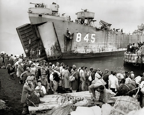 | △ 철수하는 유엔군 수송선에 오르기 위해 몰려든 피란민들의 모습(1950.12.19). (눈빛출판사 제공) |