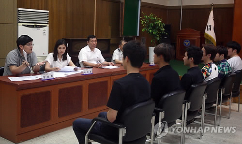 | △ 의무경찰 선발 시험에서 지원자들이 면접 시험을 보고 있다. (연합뉴스 자료사진) |