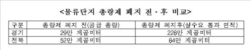 다만 총량제 폐지를 법적으로 뒷받침할 물류시설법 개정 절차가 늦어져 이날 국무회의를 통과한 것이다.