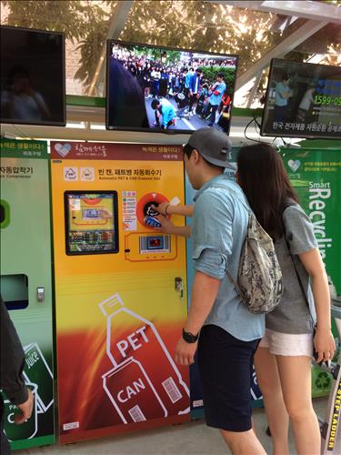 서울시는 홍대 걷고 싶은 거리에 캔·페트병 자동 회수기와 종이팩 압축 회수기, 빈 유리병 회수기로 구성된 재활용 자판기를 설치해 운영에 들어갔다고 16일 밝혔다.