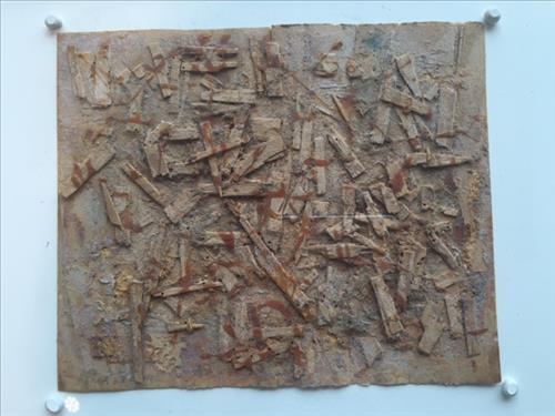 당시 이 사건으로 재판을 받던 그는 합판에 나무 조각, 고추장, 간장, 밥풀로 '구성'이라는 작품을 만들었다.