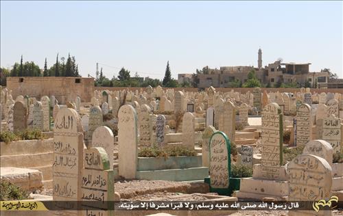 IS는 비석을 세우거나 무덤에 봉분을 만드는 것은 우상숭배라는 이유로 금지하고 있다.