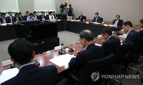 | △ 2014 공공기관 경영평가 의결 (서울=연합뉴스) 황광모 기자 = 17일 오전 서울 세종로 정부청사별관에서 열린 제10차 공공기관 운영위원회에서 정부,민간 위원들이 최경환 경제부총리 겸 기획재정부 장관의 모두발언을 듣고 있다. |